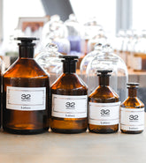 Our amber glass diffusers allude to the apothecary jars that you could find in pharmacies in the '50s and '60s next to ceramic pharmacy vases. Available sizes are 100 ml, 250 ml, 500 ml and 1 L and they all come with ground glass stoppers made of amber glass.