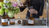I diffusori in vetro ambrato ricordano i contenitori delle farmacie anni ’50 e ’60, disposti negli scaffali accanto a vasi in ceramica. Disponibili in formato da 100 ml, 250 ml, 500 ml e 1 L, possono essere chiusi da un tappo smerigliato anch’esso in vetro ambrato.